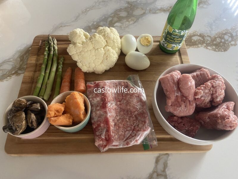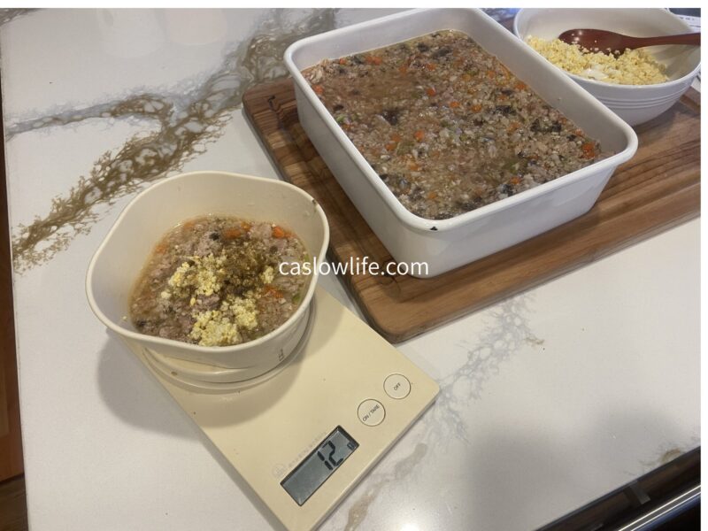 本来なら、犬は炭水化物10パーセントが勧められており、活動的なワンちゃんなら20%でも問題ないと記載されていたことを参考に再び、レシピを考えなおしました。