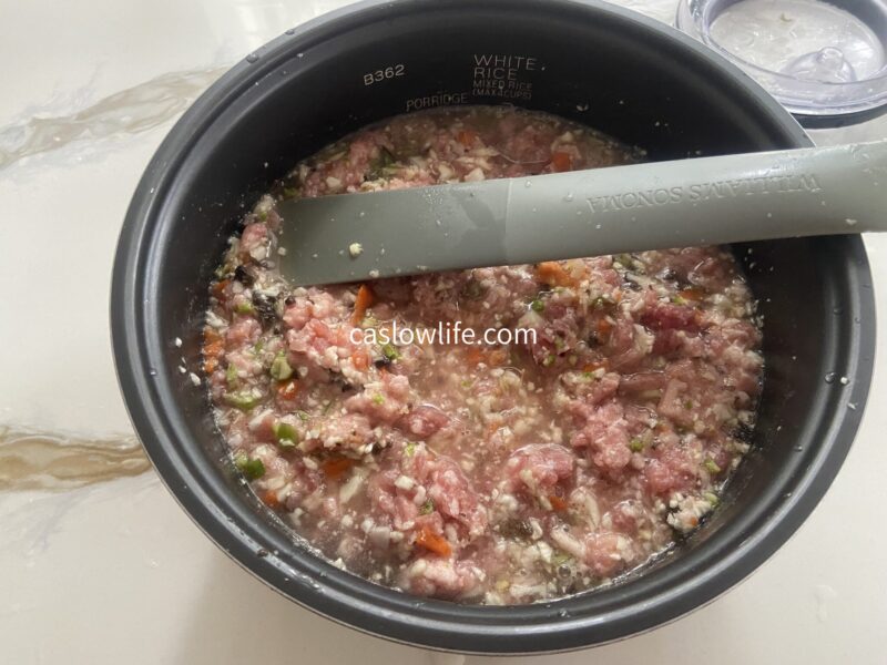 - 炊飯器の中に、レモン汁、オリーブオイル以外を入れます。